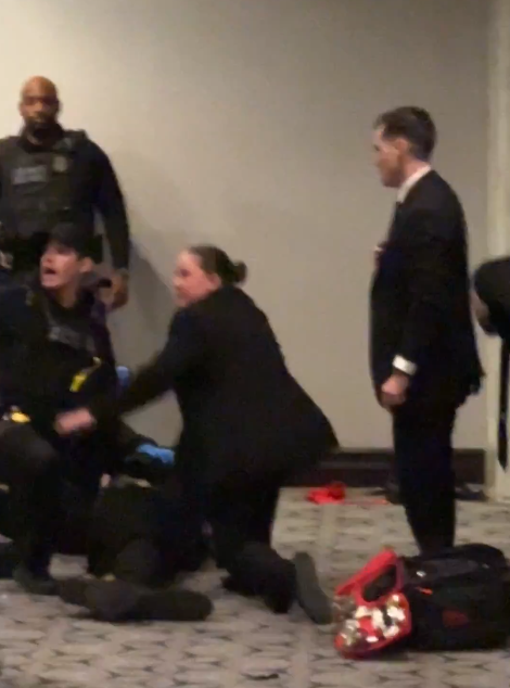 Во текот на изминатите часови, на социјалните мрежи се проширија видео-снимки кои го прикажуваат пресудниот момент на апсењето на човекот осомничен за пукање во хотелот Вашингтон Хилтон, каде се одржуваше престижната вечера на здружението на дописниците од Белата куќа.
