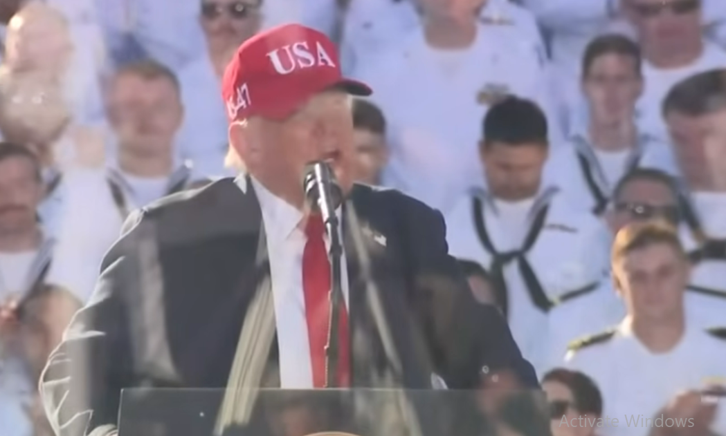 Трамп им рече на војниците дека Соединетите Американски Држави сега се „најпочитуваната земја во светот“ благодарение на „луѓе како вас“, кои ги опиша како „најголеми морнари“ и „горди американски патриоти“.