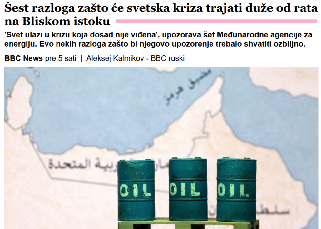 • „Април ќе биде многу полош од март. Според најконзервативните проценки, дефицитот ќе се удвои“, вели Фатих Бирол, шеф на Меѓународната агенција за енергија. „Резултатот ќе биде инфлација и забавување на економскиот раст“, рече тој. „А може да биде и многу полошо. Наскоро би можеле да дојдеме до точка кога многу земји ќе воведат рационализирана потрошувачка на енергенси“, додаде Бирол.
